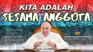 Paus Fransiskus telah mengumumkan tema Hari Komunikasi Dunia ke-53 untuk tahun 2019. Terinspirasi dari surat Rasul Paulus kepada jemaat di Efesus bab 4:25 “Kita adalah sesama anggota: dari Komunitas Maya ke Komunitas Nyata” menjadi tema yang dipilih Paus seperti dilansir asianews.it, 29/9.